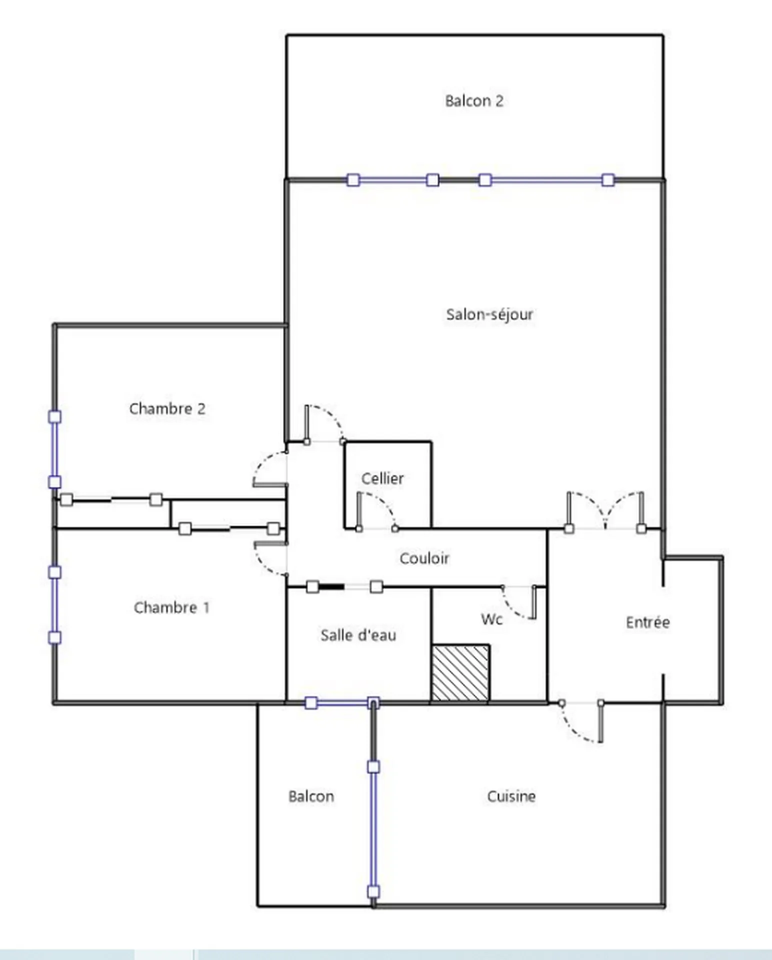 Prévoir travaux de rafraîchissement: les deux premières photos ont été retouchées en gardant les volumes existants.